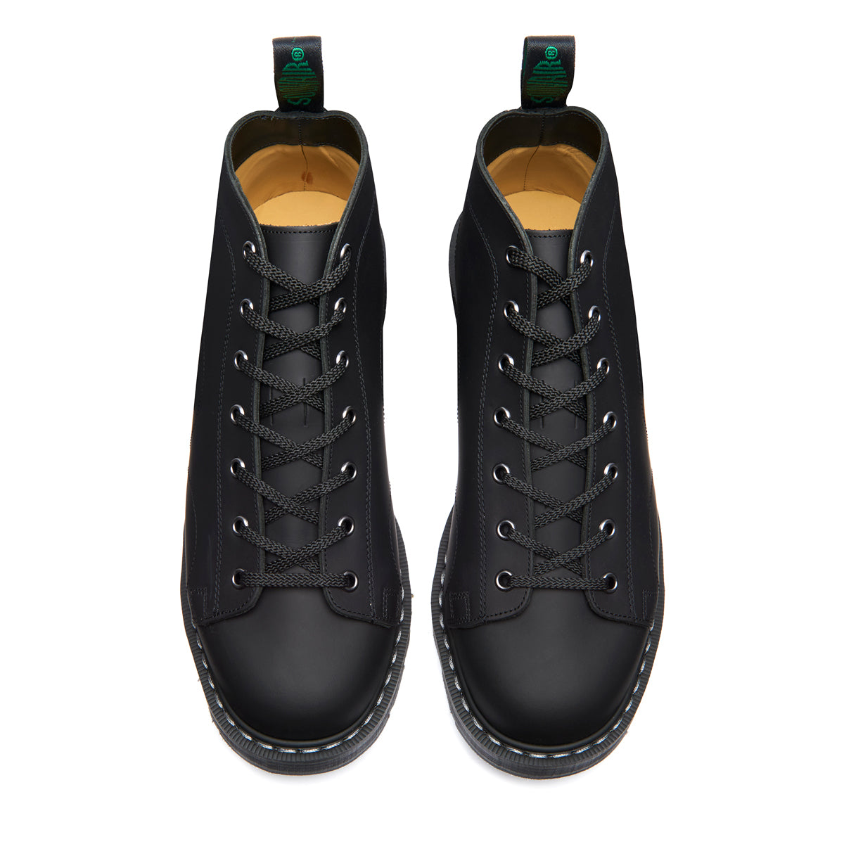 Applying a suede protectant before wearing your footwear for the first time will help guard the surface. A suede brush can be used to remove dust and restore the nap after each use. Suede and Nubuck finishes should be kept away from large amounts of water due to its porous quality.